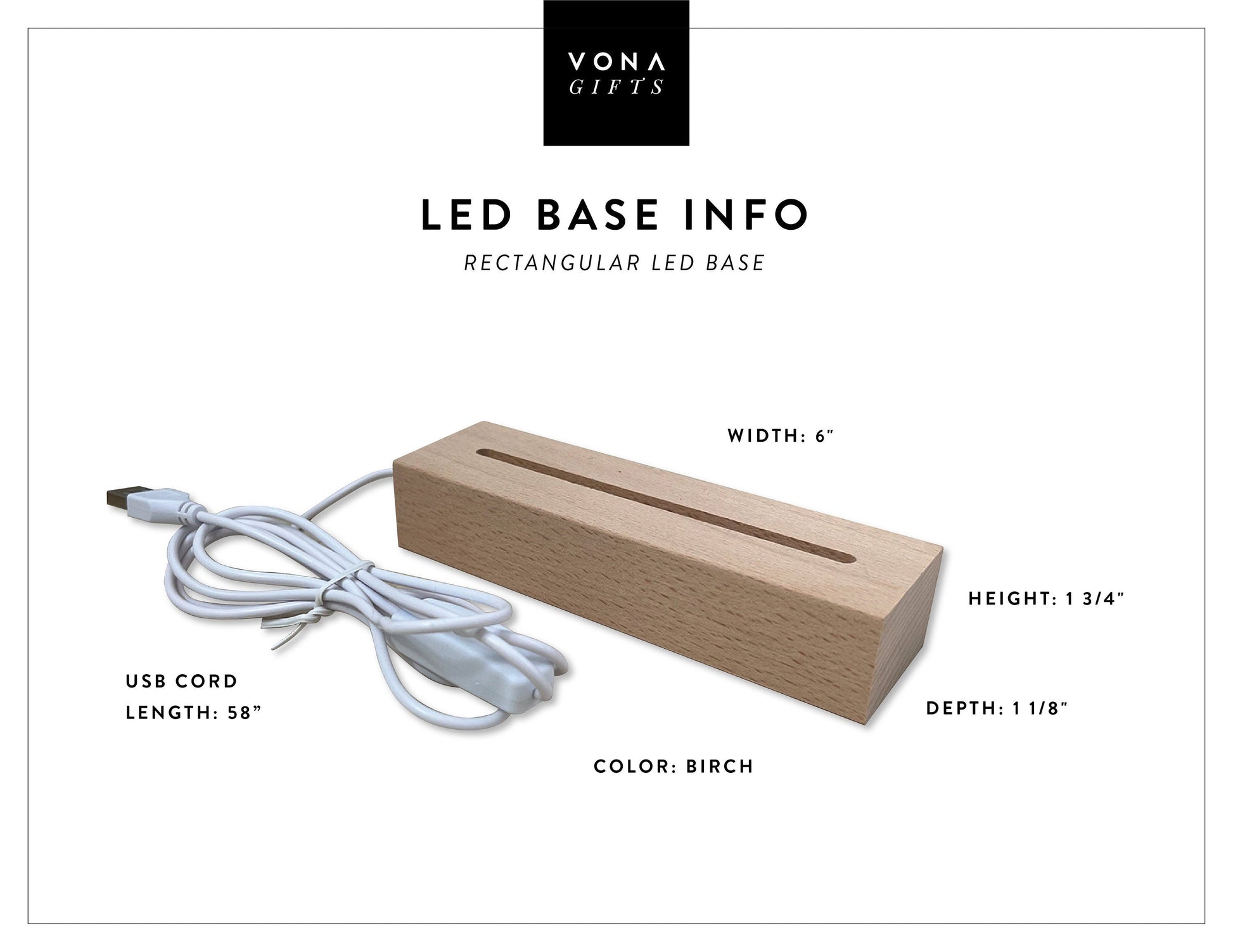 - Base: Solid Beech Wood / 6"W x 1.75"H x 1.25" D
