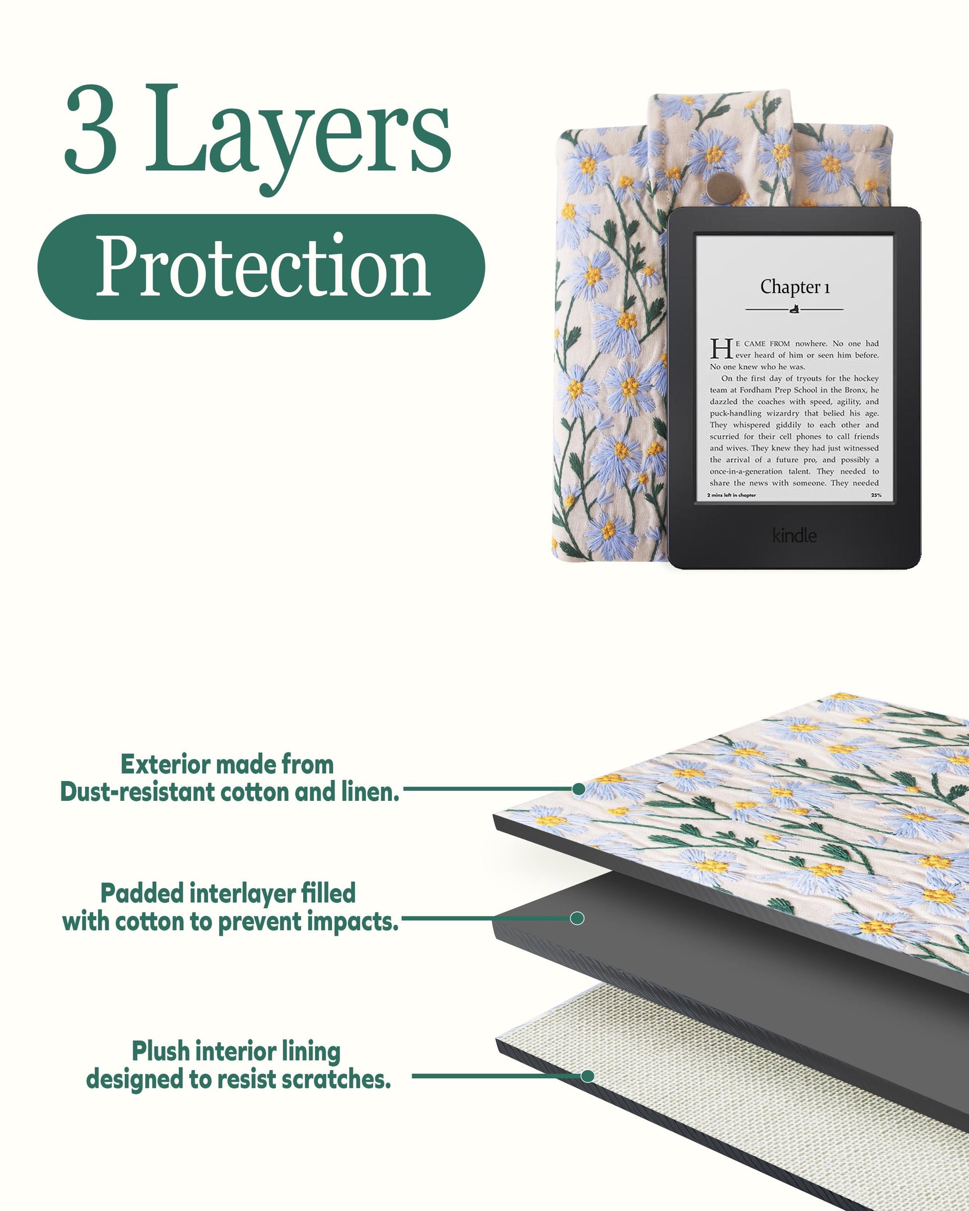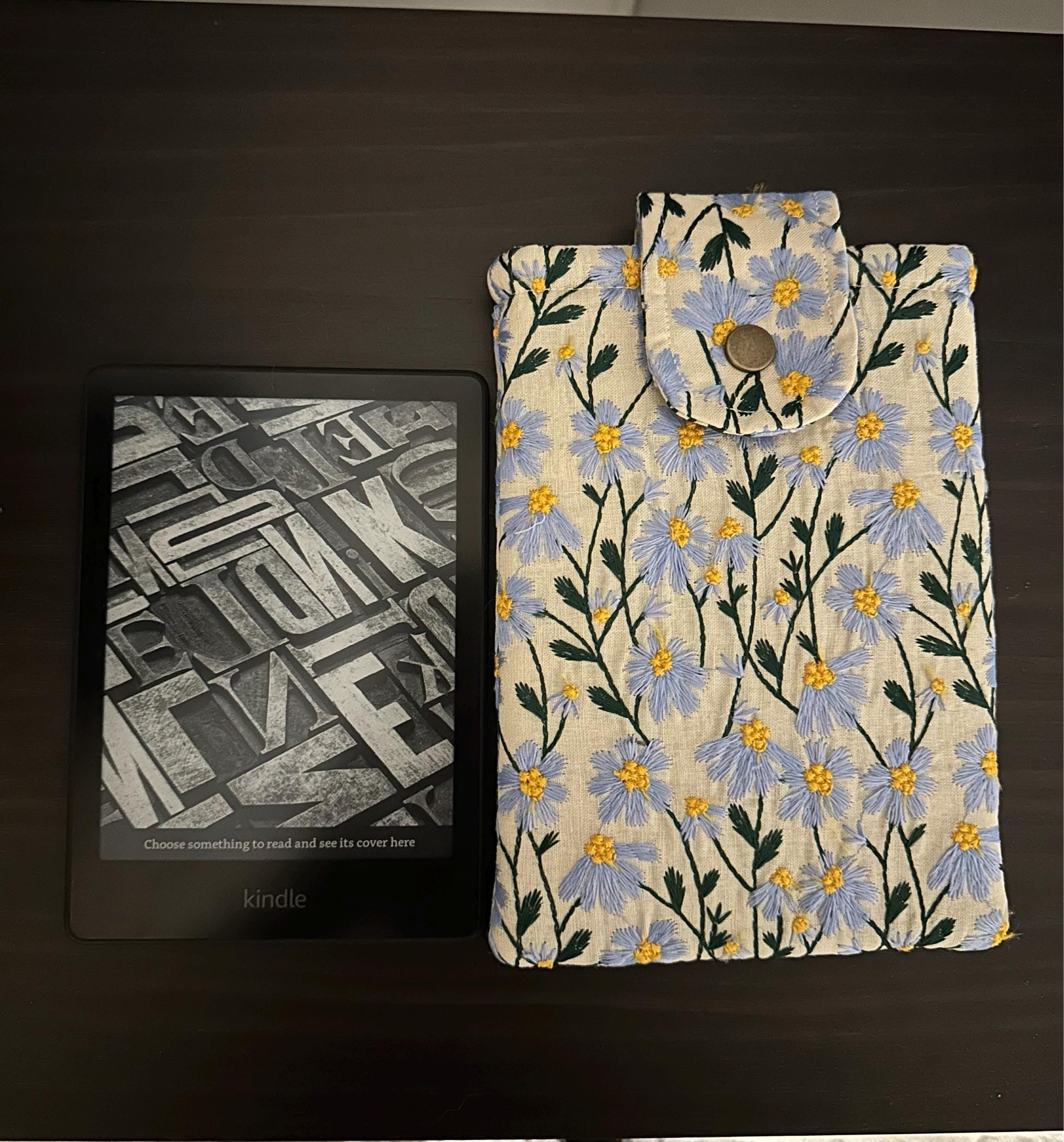 Blue Beige Daisy Embroidered book sleeve, kindle sleeve, ereader cover, iPad sleeve, Book Gift, book pouch, Bible cover