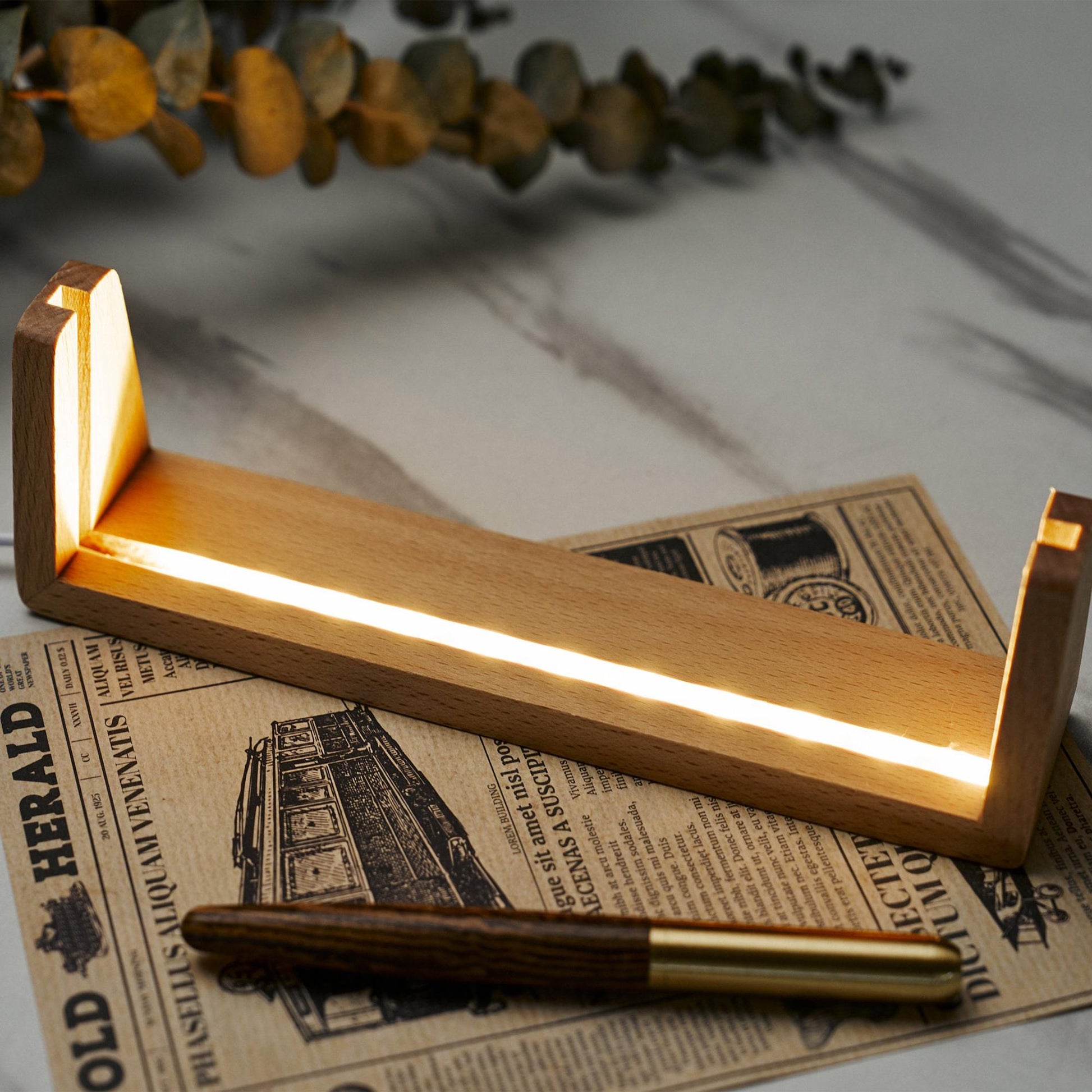 This handcrafted name plate, bathed in soft LED light and resting on a beautiful wooden base, offers a touch of enduring charm. The clear acrylic and warm wood create a feeling of timeless elegance, reminiscent of a bygone era.