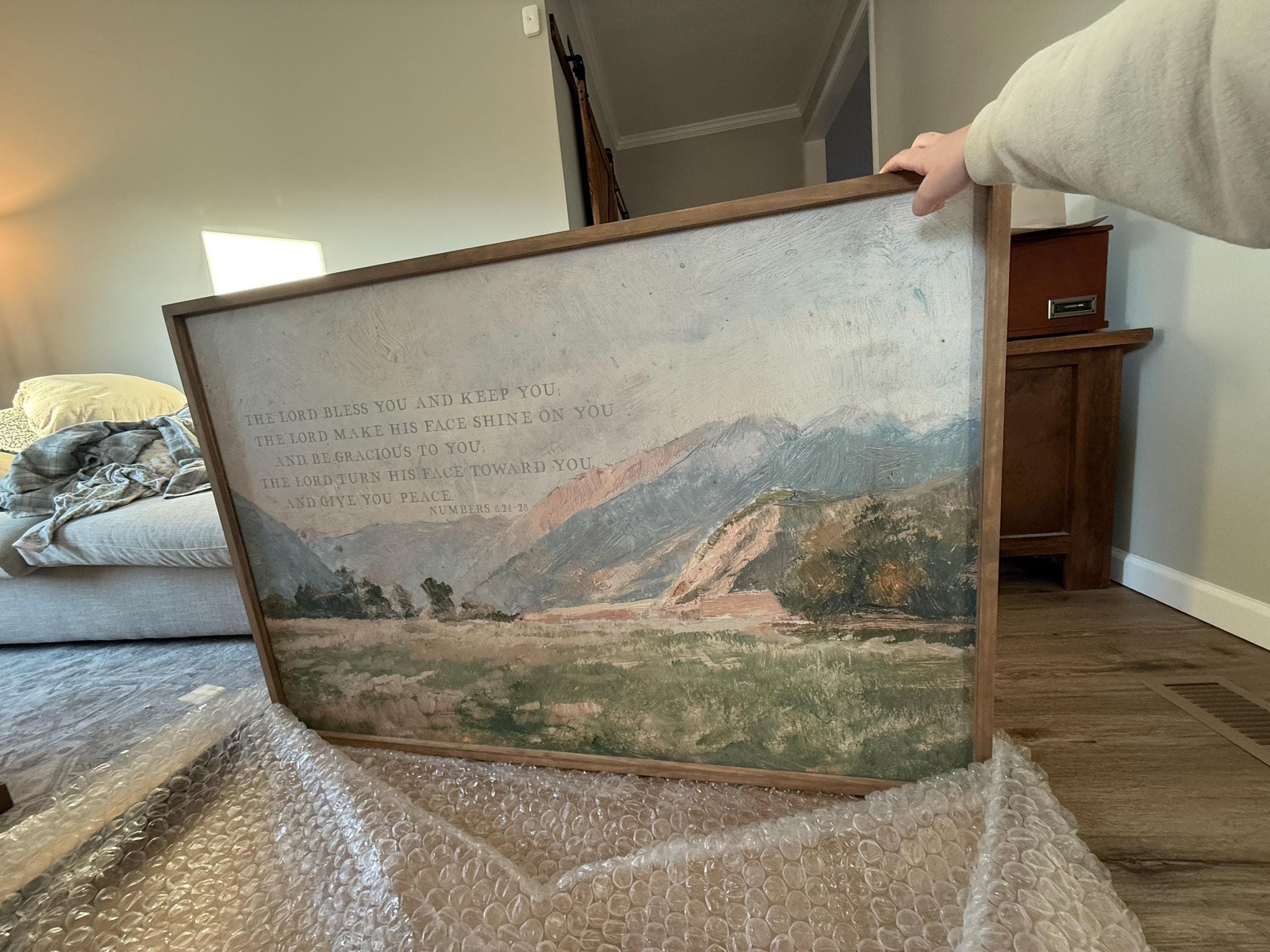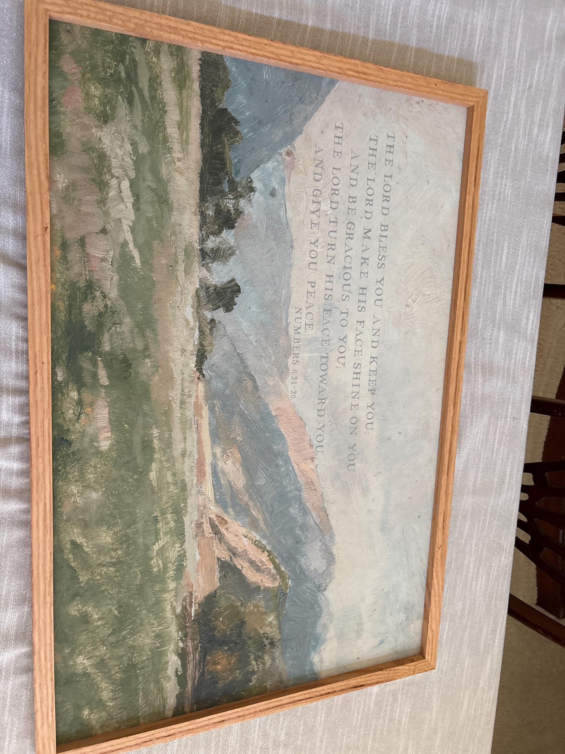Vintage Art Printed on Cotton Canvas with "The Blessing" Lyrics Added