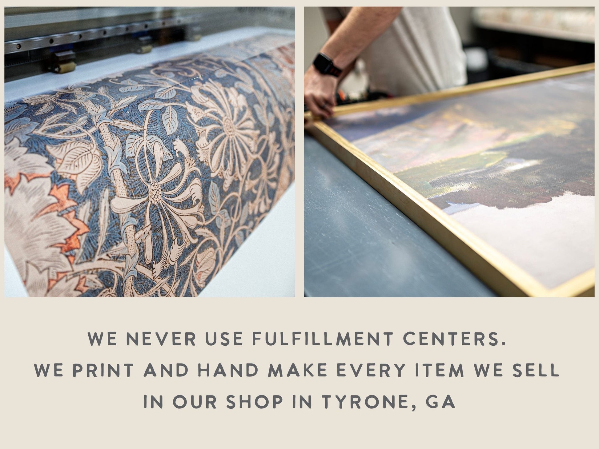 -Art is printed on a premium cotton canvas and permanently mounted to composite backer or birch (for the two larger sides), before being professionally framed. Art is lightweight and very easy to hang with the two sawtooth hangers that are mounted to the back.