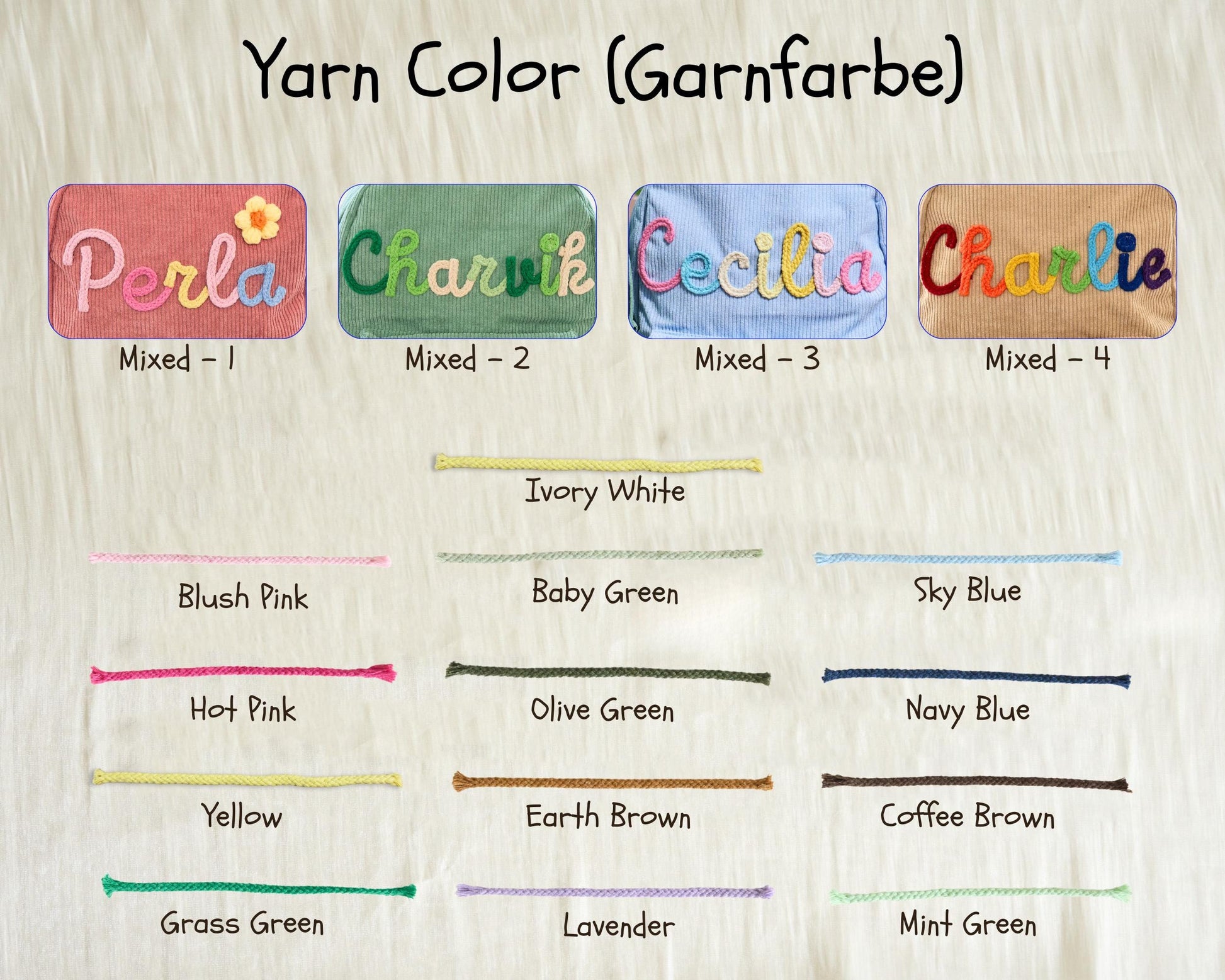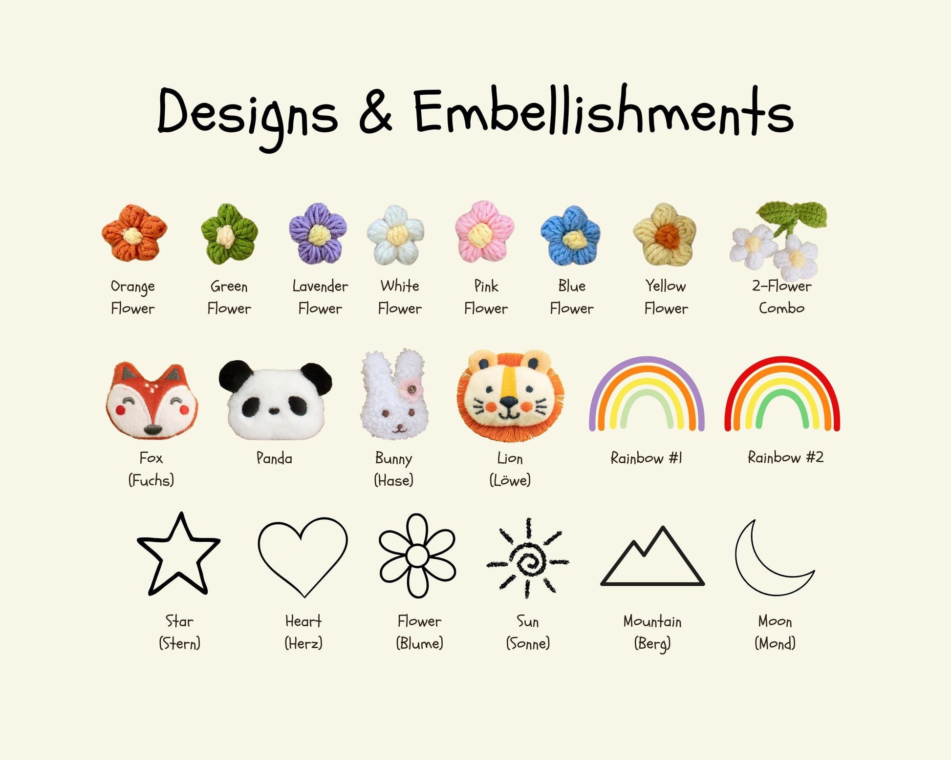 ⤷ If Stiched Yarn Pattern Designs and Animal Embellishments, are ordered at the same time, I will put the animal embellishment on the TOP RIGHT corner.