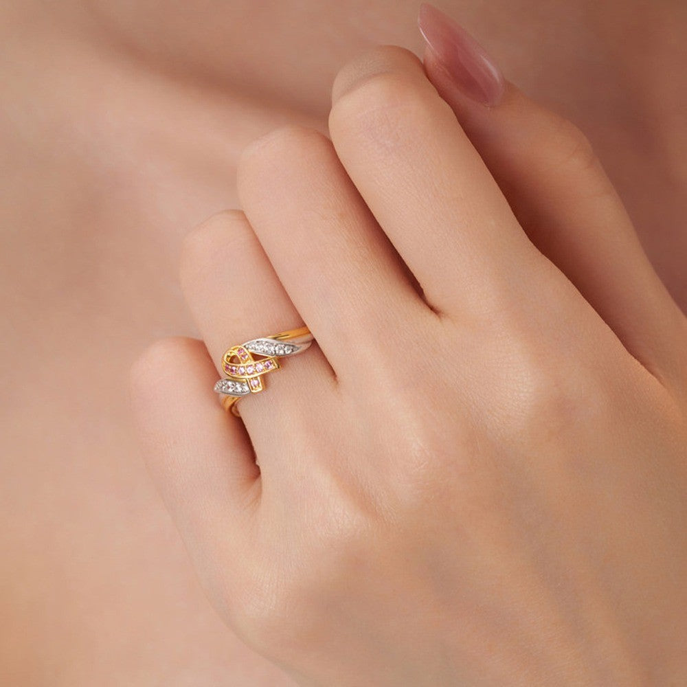 Breast Cancer Awareness Ribbon - The ring features a breast cancer awareness ribbon design, symbolizing support, hope, and solidarity for those affected by breast cancer. It serves as a visible display of awareness and advocacy for breast cancer causes. This ring supports someone going through breast cancer treatment or recovery.