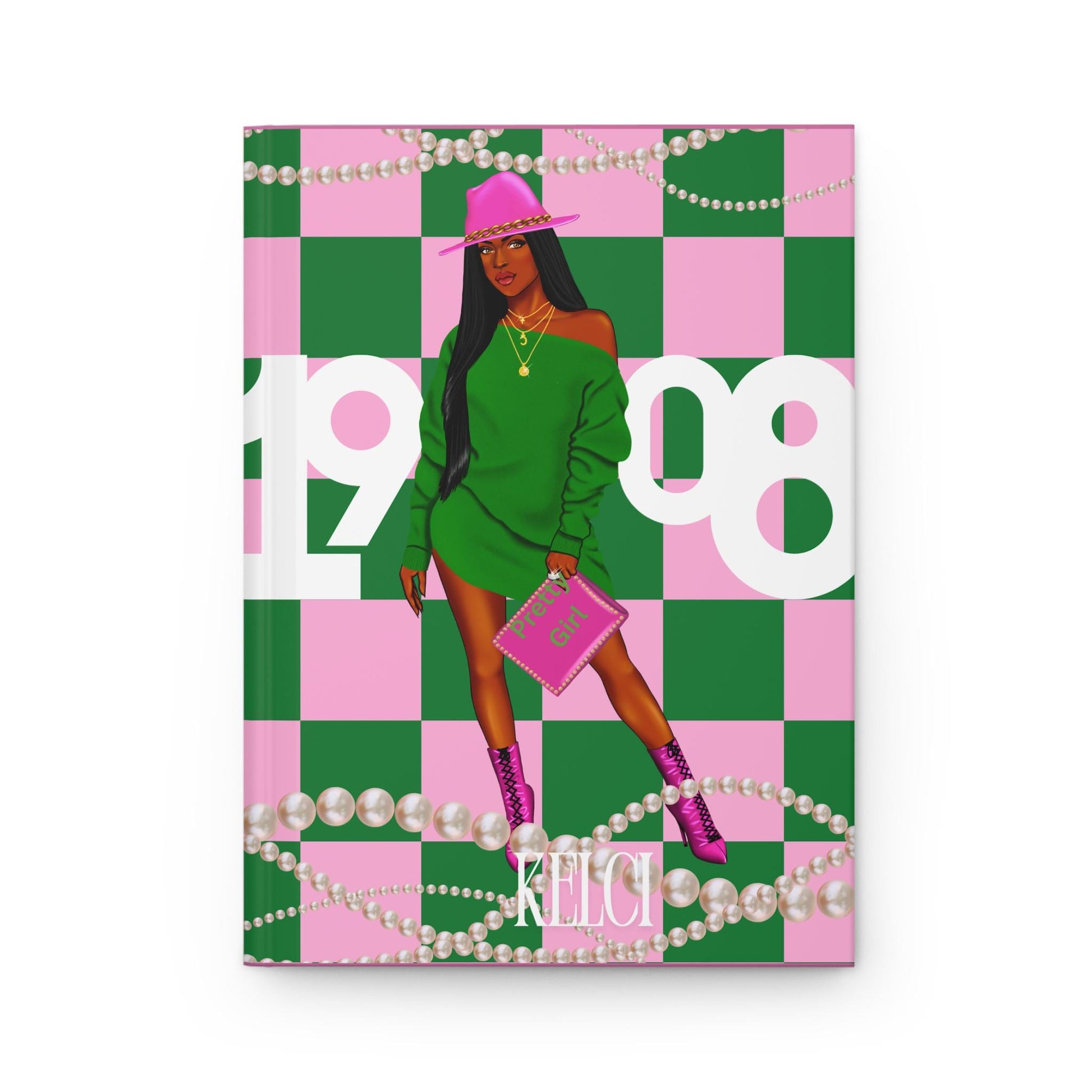 Custom Pink and Green Hardcover Journal,1908 Journal, Sorority Gift, Alpha Kappa Alpha Notebook, Probate Gift, AKA Journal, Greek Life Gift,