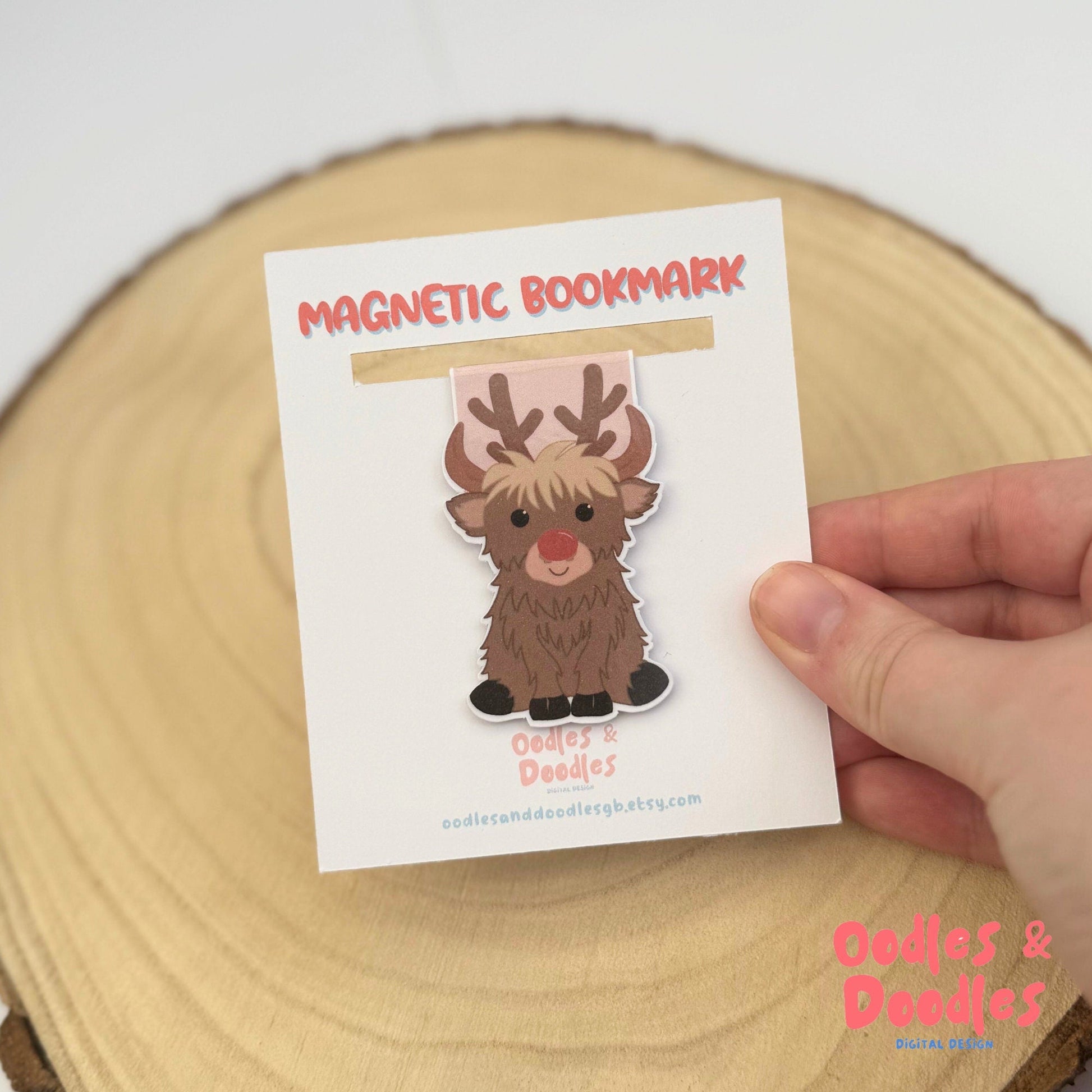 🐮 Magnetic bookmark with cute festive Highland Cow illustration