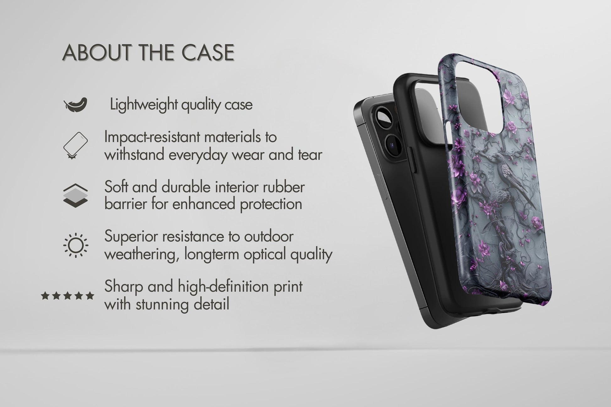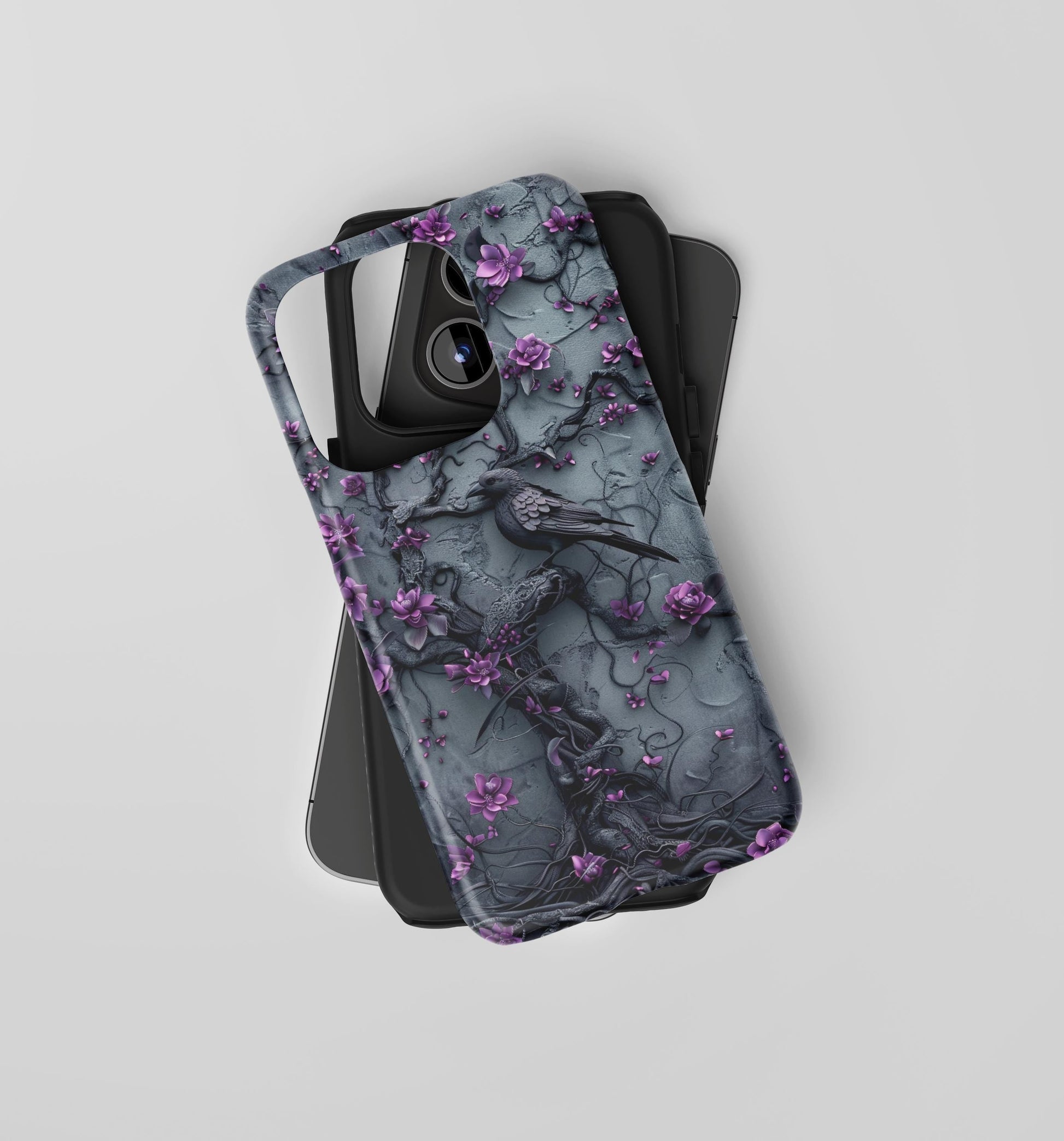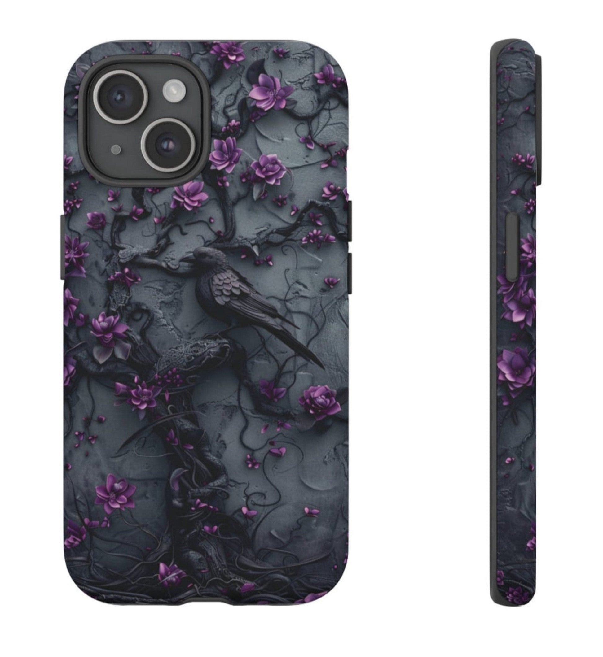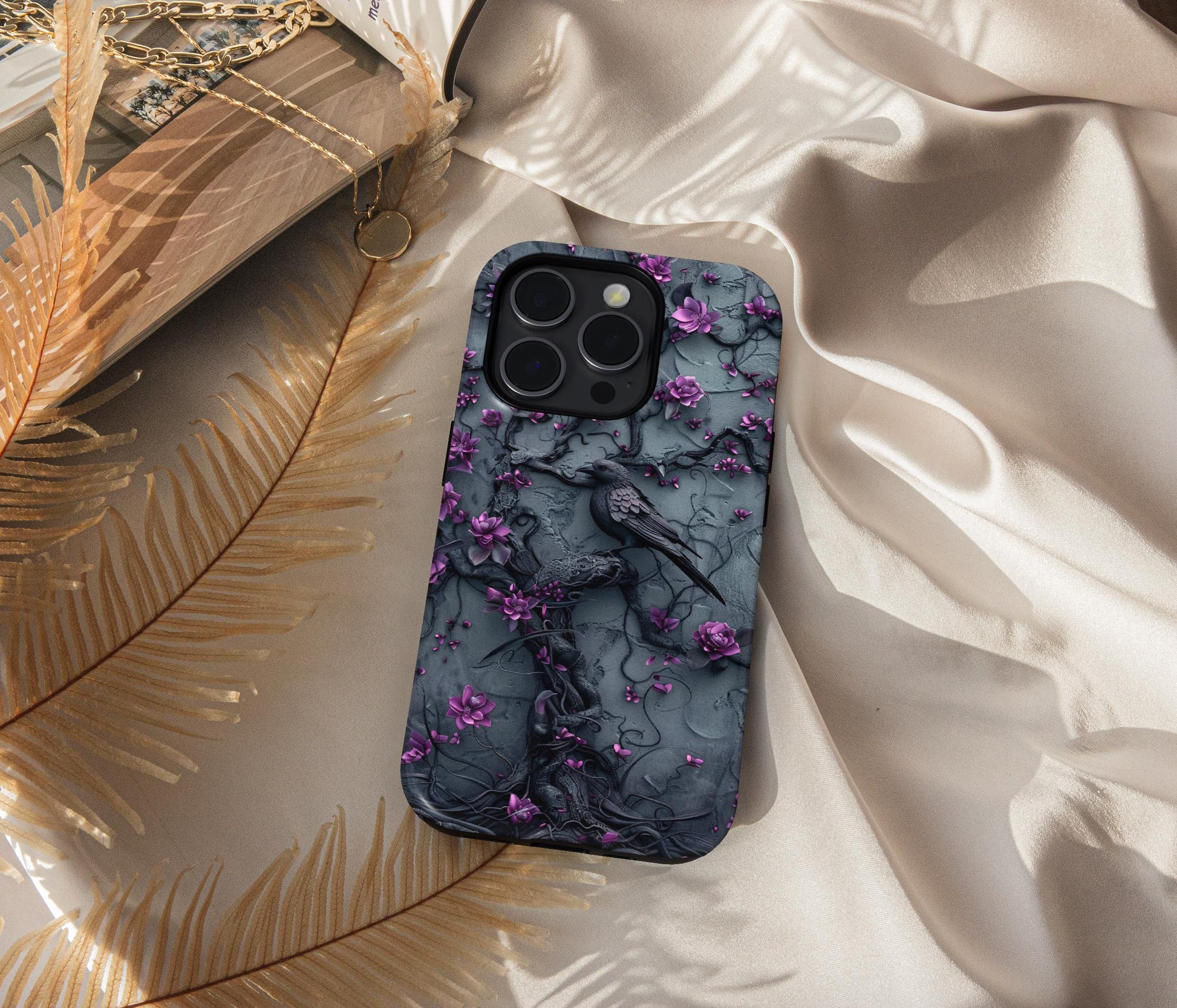 Goth Gothic Dark Spooky Raven Crow Phone Case Witchy Purple Tree Flower iPhone 15 14 13 12 11 8 Pro Max X XS XR Pixel Samsung S23 S24+ Gift