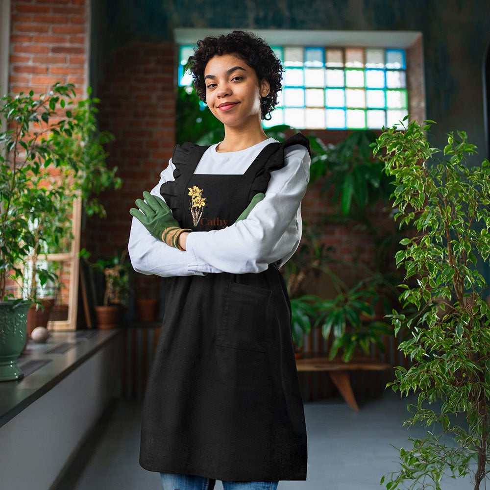 Personalized Touch - Make this apron uniquely yours by adding a name and delicate birth flower. This unique personalization adds a special touch, making it a thoughtful and stylish accessory.