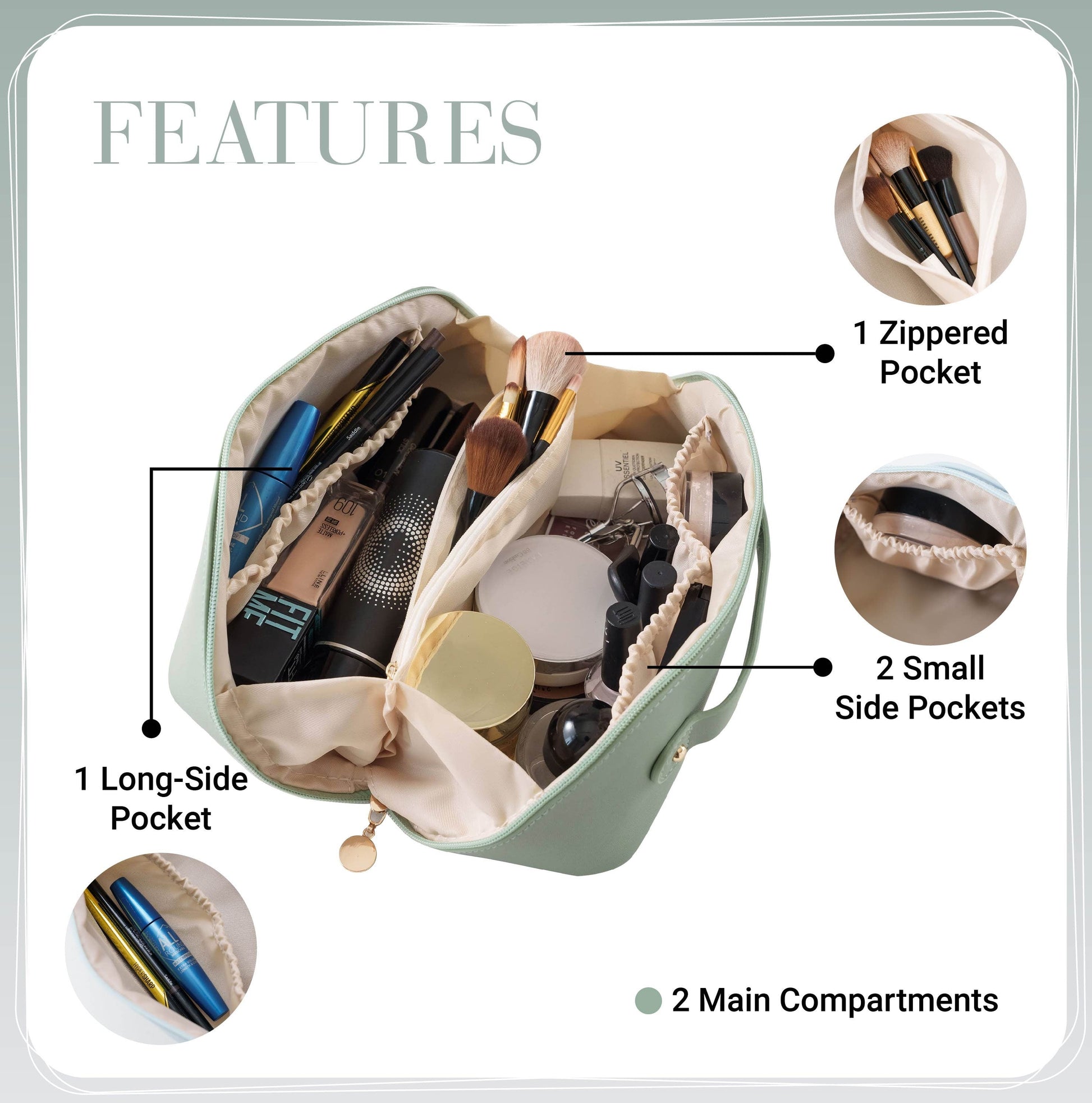 - Organized Compartments: Enjoy easy access to your cosmetics with multiple sections for specific items. The case includes compartments for eyebrow pencils, skincare products, makeup brushes, color essentials, and makeup setting items.