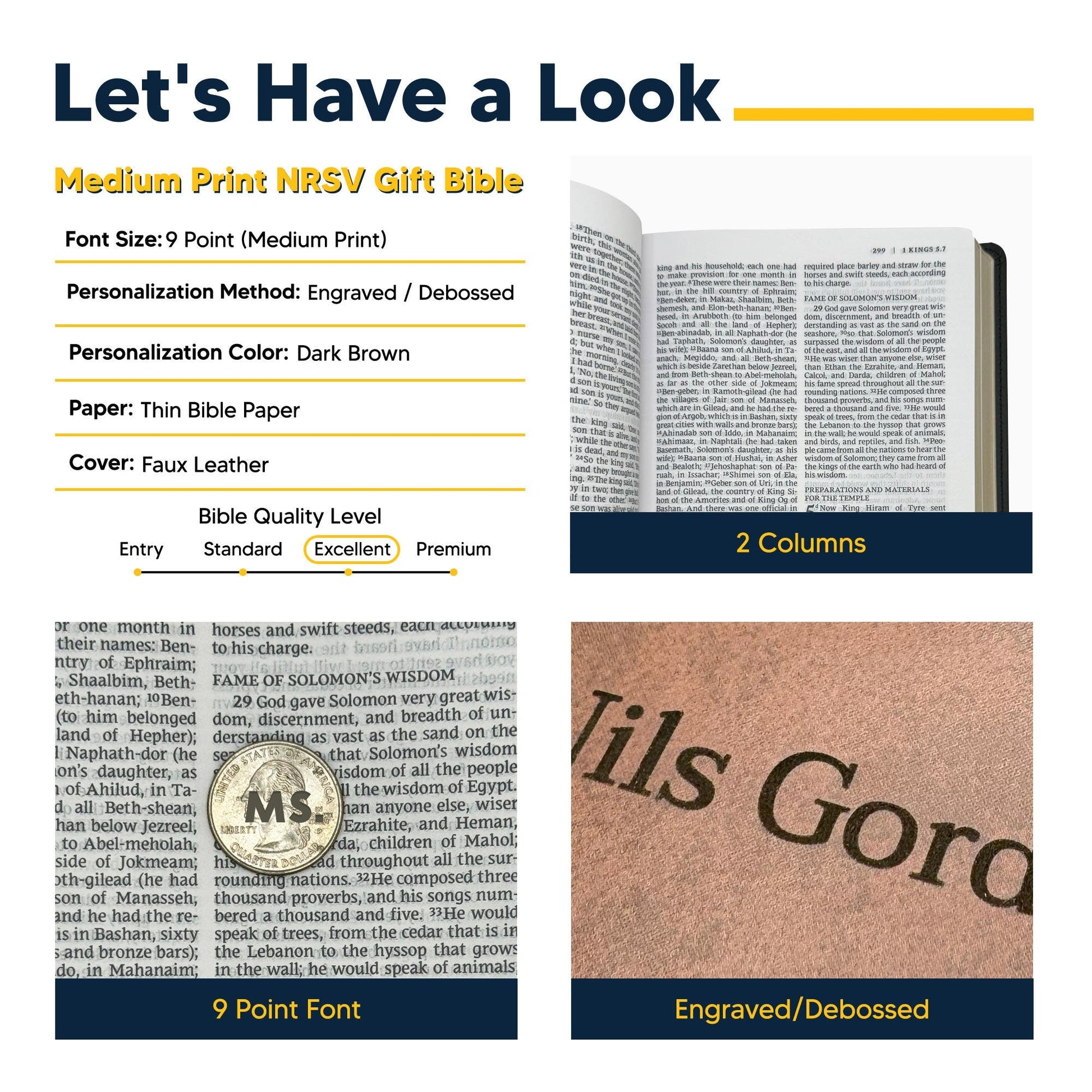 Personalized NRSV Bible New Revised Standard Version Catholic Edition, Catholic Bible, Brown Faux Leather Custom Bible Cover, Baptism Gift