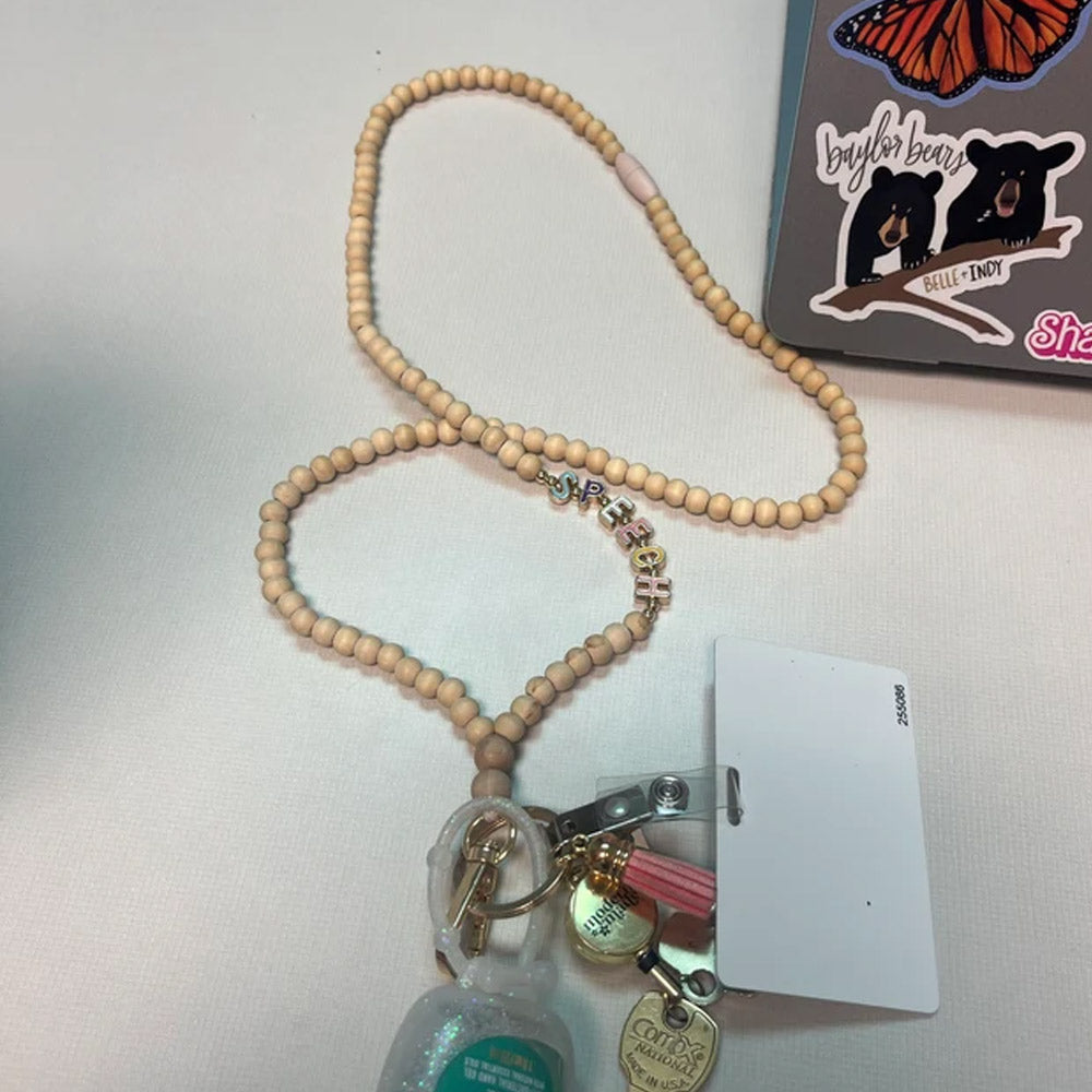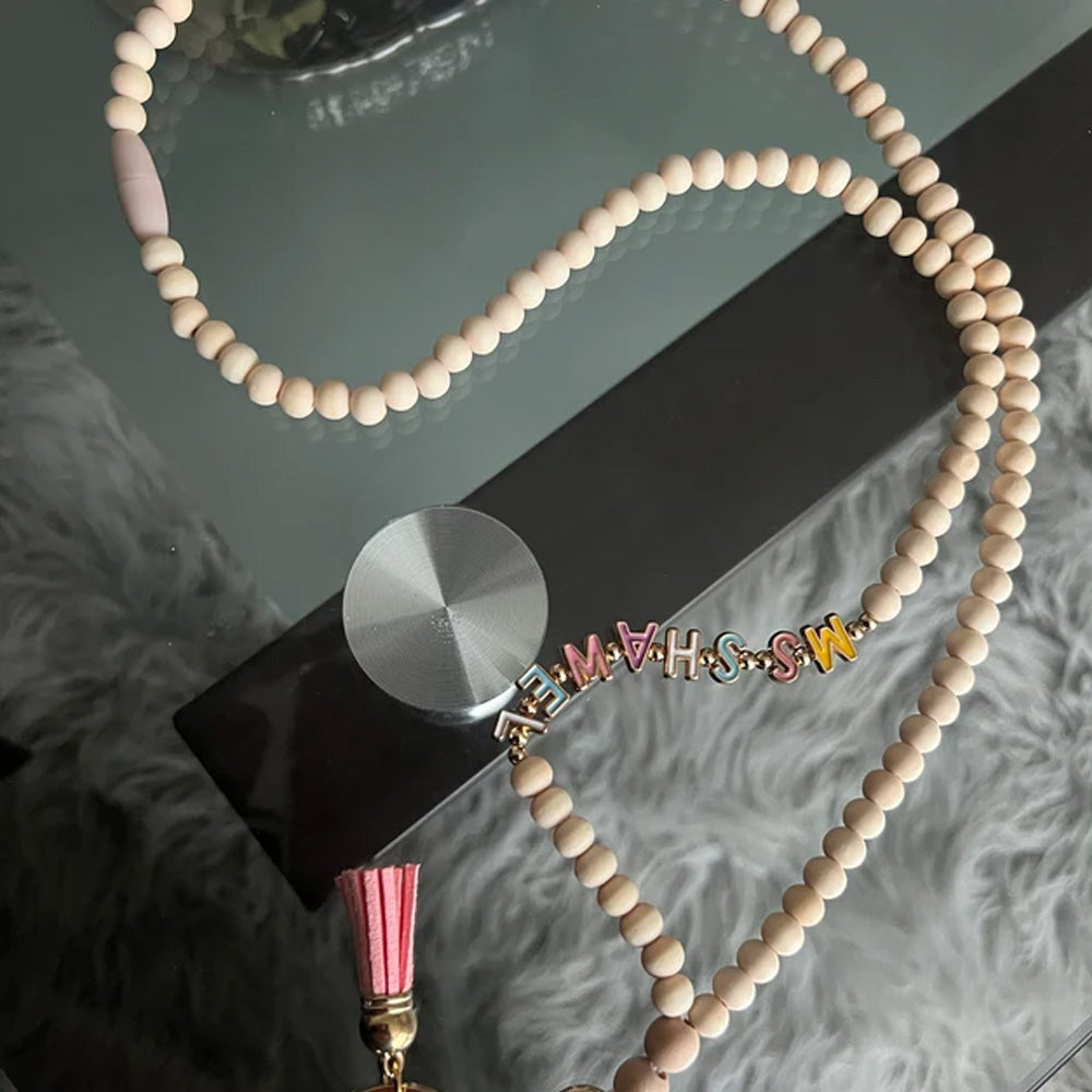 Personalized Teacher Lanyard, Beaded Wooden, Teacher Lanyard with Name, Custom Lanyard Teacher/Teacher’s AideGift for Her ID Badge Holder
