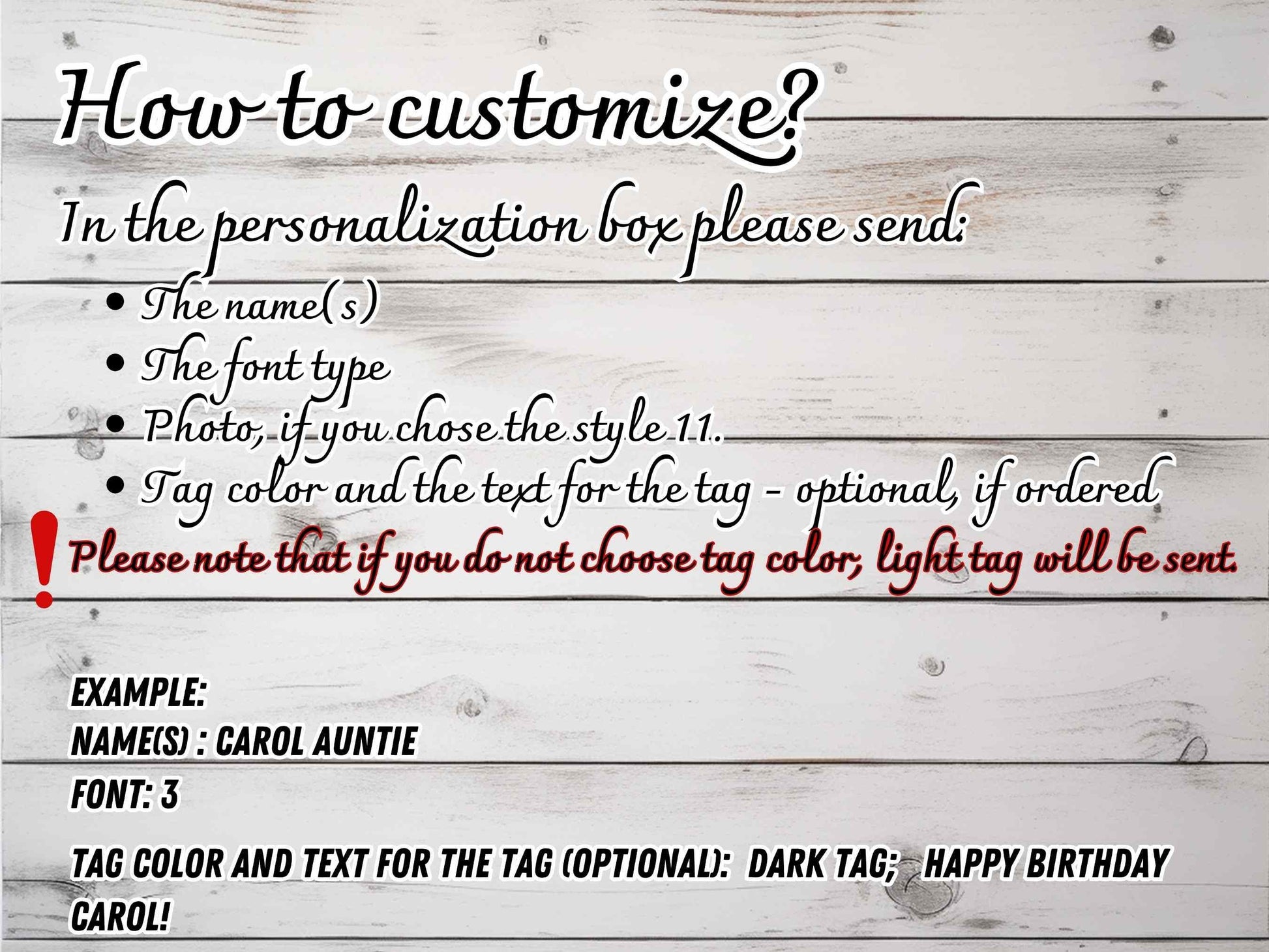 ➡️ ➡️ ➡️ In the personalization box please give: