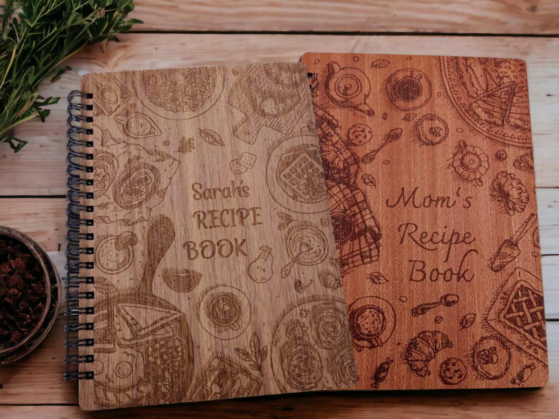 Personalized Wood Recipe Spiral Notebook Birthday Gift for Her Custom CookBook Personalzied Recipe Book Wooden Spiral Notebook Cooking Gift