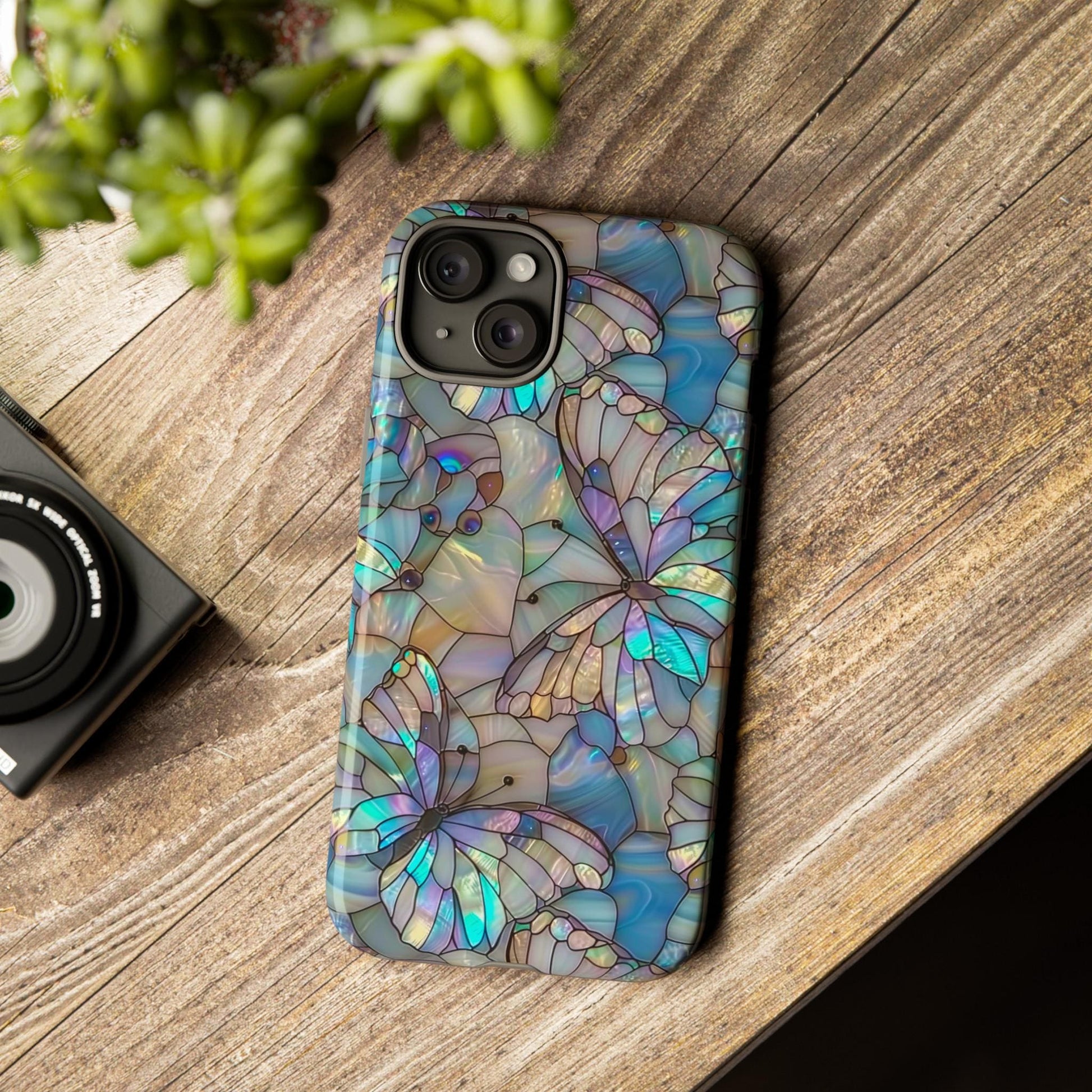 Stained Glass Butterfly Mosaic Phone Case, Stain Glass Look Butterfly Design Phone Cover For iPhone Pro Max, Pixel Pro, Samsung Ultra Plus