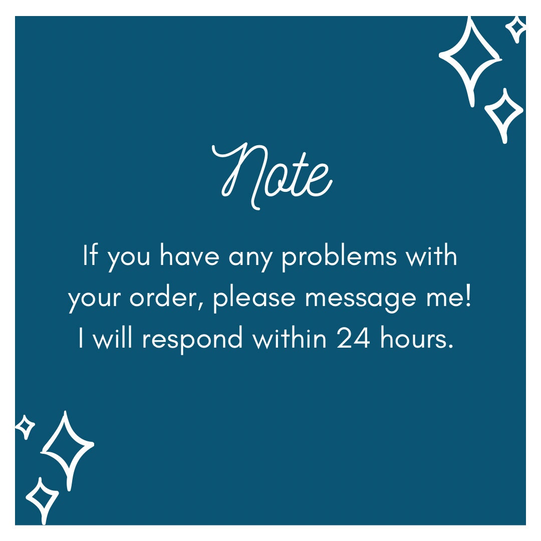 If you have any issues with your order, please message me so I can help! Thank you so much for supporting my shop!