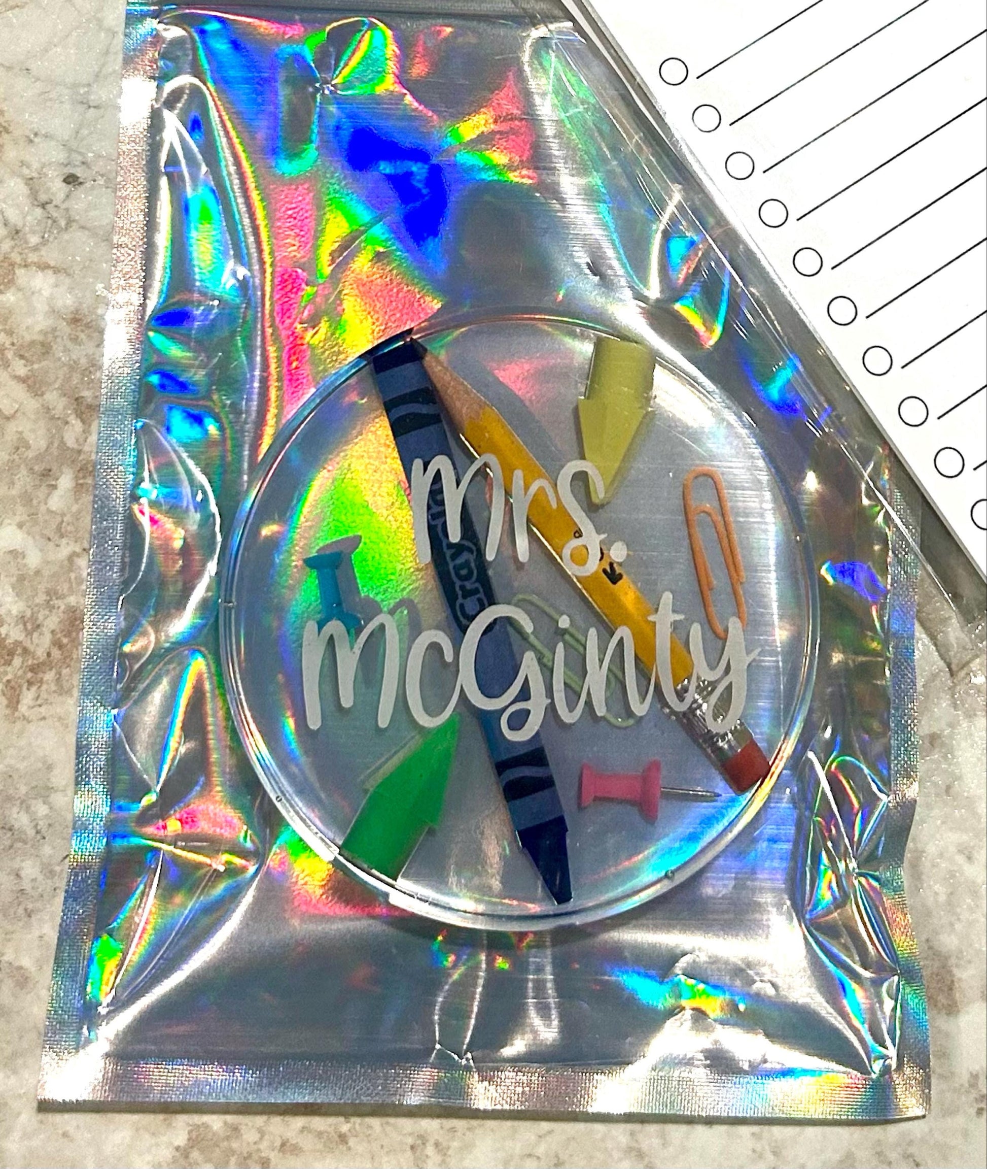 Customizable teacher coasters - brighten your teachers day and desk with a cute custom coaster your teacher will sure love! Pair this with a mug or gift card to their favorite drink spot to make a special treat for your amazing teacher!