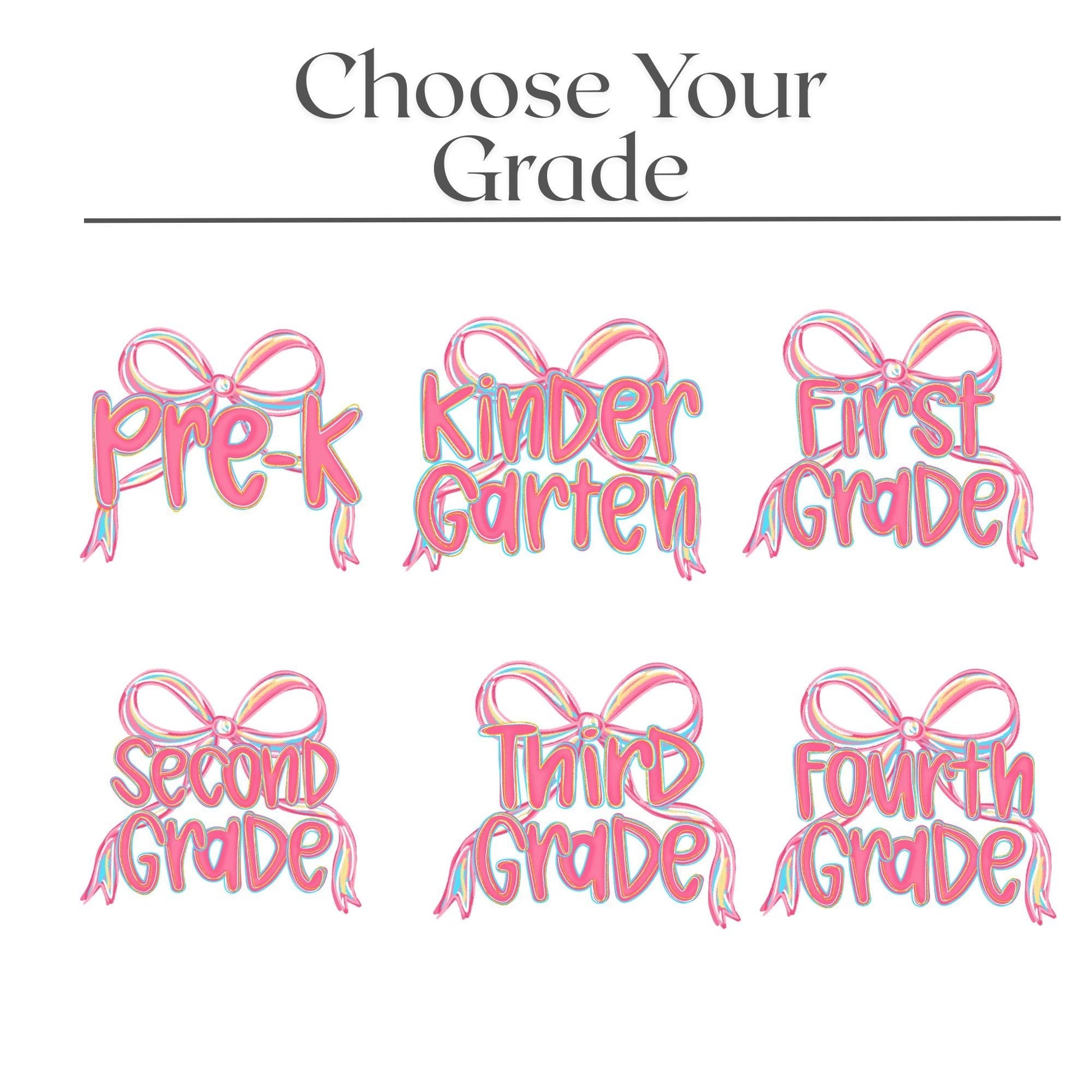 Teacher Grade Crew Bow Shirt Back to School Girl T-Shirt Pastel Neon Grade Shirt Cute Grade Level Tee for Girls Back to School Outfit 2025T