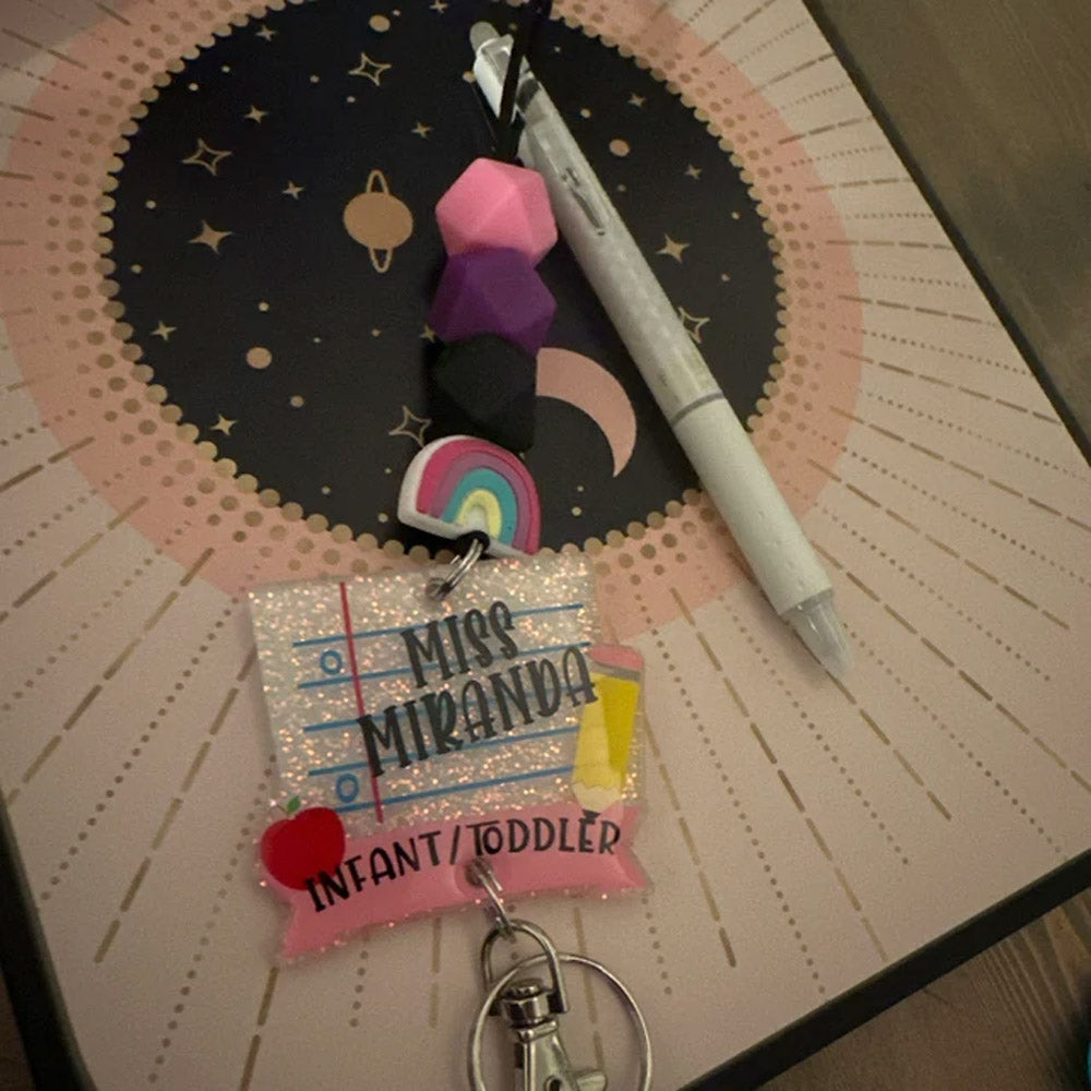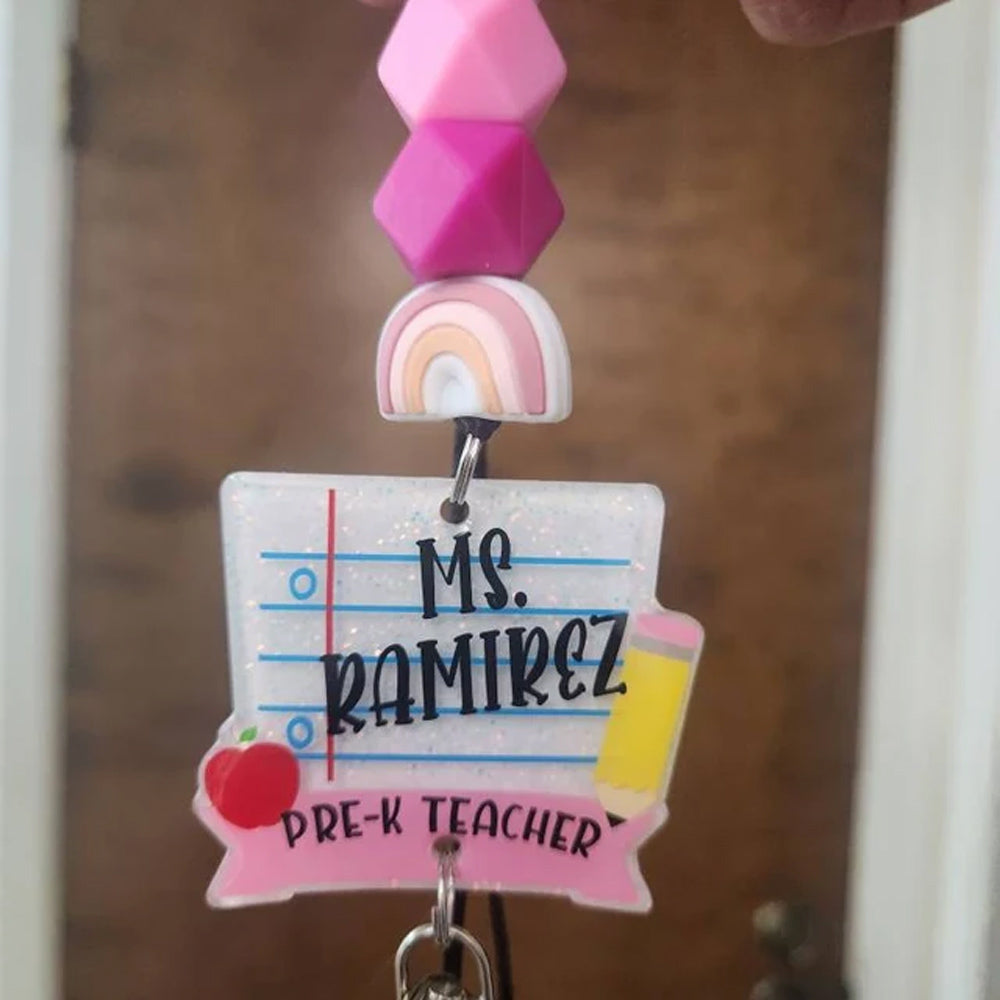 Teacher Lanyard, Notebook Paper with Grade or Subject Lanyard, Silicone Bead Lanyard, Personalized Lanyard, Teacher Appreciation