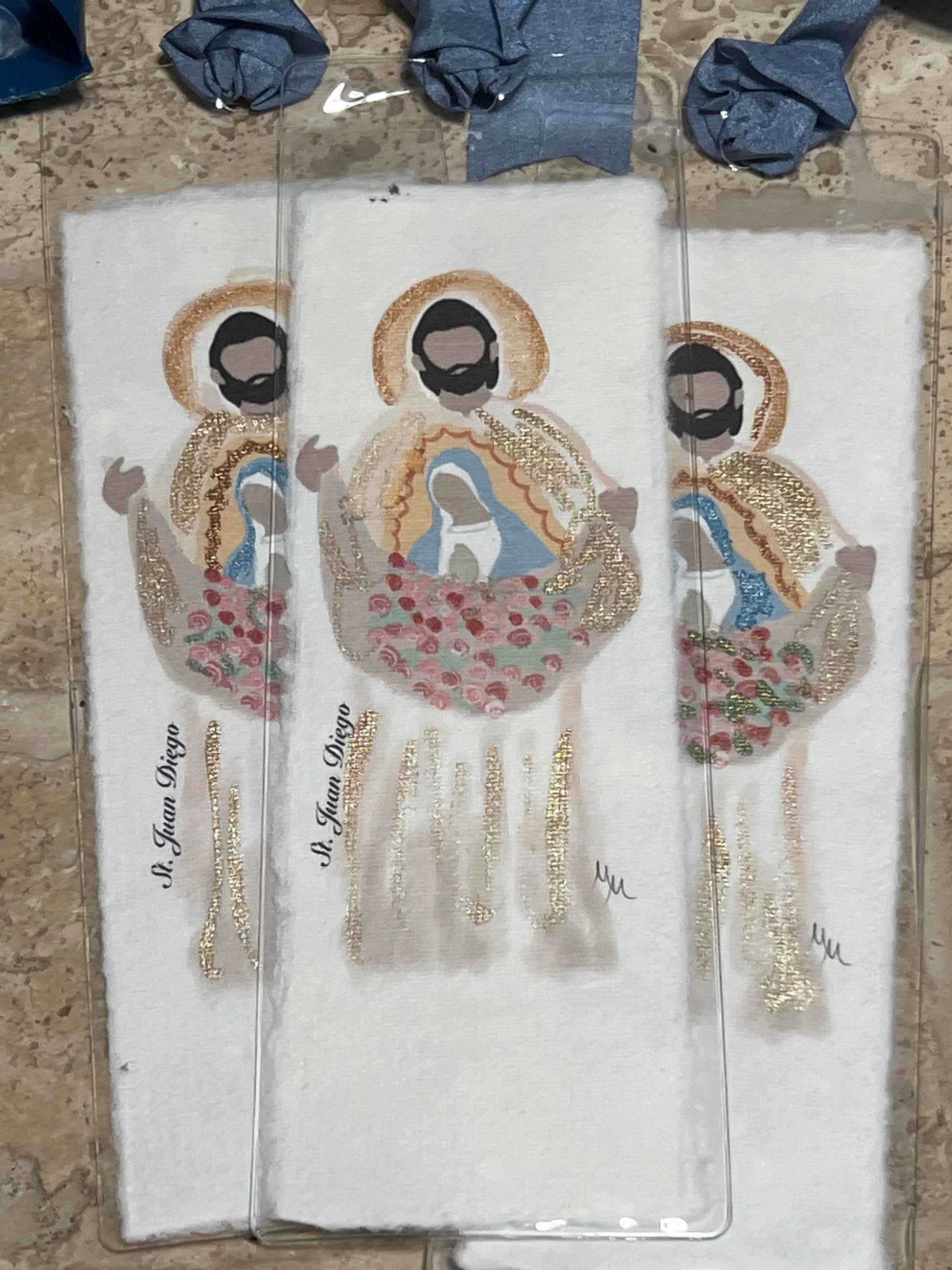 Deckled paper watercolor bookmark of your favorite saint or religious icon.